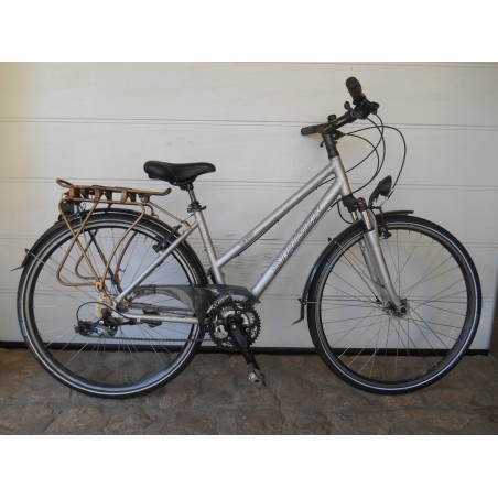 28 colos Staiger női trekkingkerékpár,alumínium vázzal,elől állítható és zárható RST teleszkóppal,teleszkópos üléscsővel,duplafalú kerekekkel,agydinamós világítással,24 sebességes Shimano Acera váltóval,újszerű állapotban.