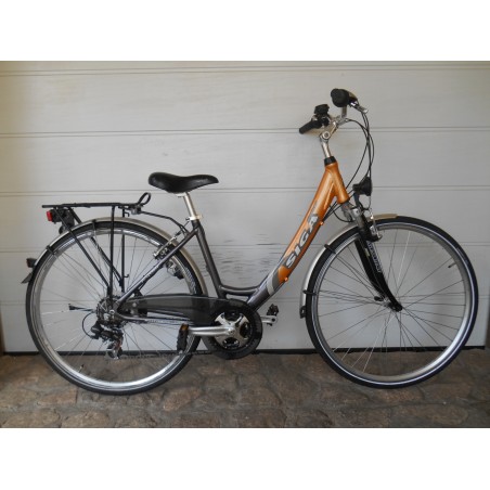 28 colos Siga női trekkingkerékpár,alumínium vázzal,elől SR Suntour teleszkóppal,duplafalú kerekekkel,21 sebességes Shimano Tourney váltóval,újszerű állapotban.